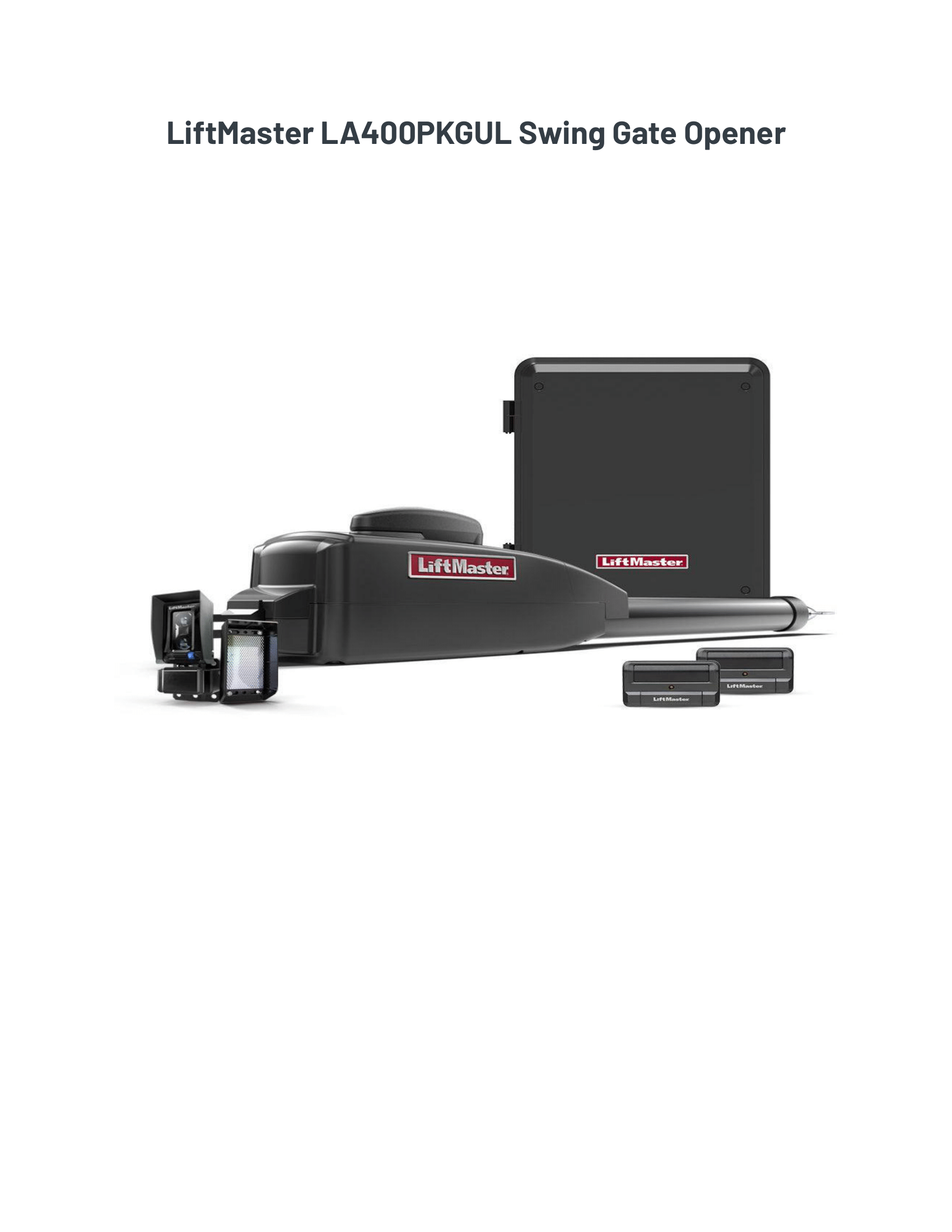 The LiftMaster LA400PKGUL is a single swing gate opener package that has everything you need to get set up. It’s a reliable swing gate opener that is rated for 100 cycles per day, and has many impressive features which contribute to its functionality.
