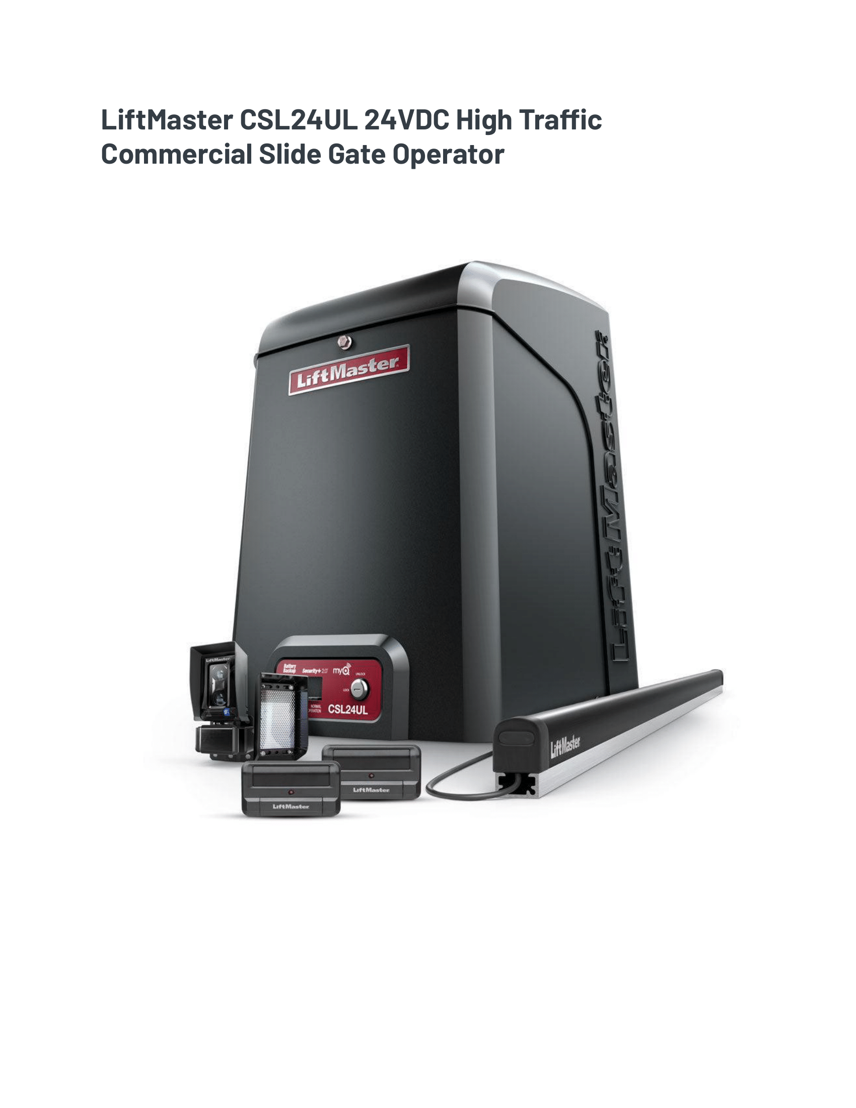The LiftMaster 24VDC is a high-traffic commercial sliding gate opener that is built to exacting standards with impressive functionality. This package contains all you need to get started, including a Photocell Model LMRRUL with protective hoods, a 5’ resistive safety edge, a 25 ft. chain (#41 black oxide), and two FREE remotes with visor clip (transmitter/remote picture is for demonstration purpose only, compatible remote model will be shipped depending on availability).